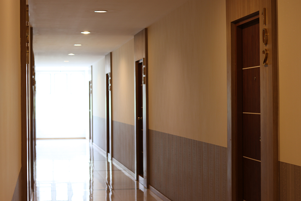 อลังการตั้งแต่ล็อบบี้เลยฮะ ด้วยการตกแต่งโทนสีน้ำเงิน-ดำ ดูสุขุม นุ่มลึก น่าค้นหา