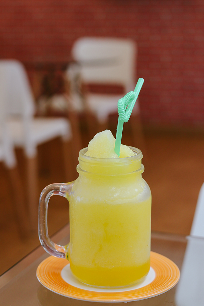 โทนสีร้านชมพู เหลืองเพิ่มความสดใสไปอีก ประกอบกับเมนูดับร้อน เห็นภาพแล้วอยากจะจิ้มทุกอันเลยล่ะฮะ