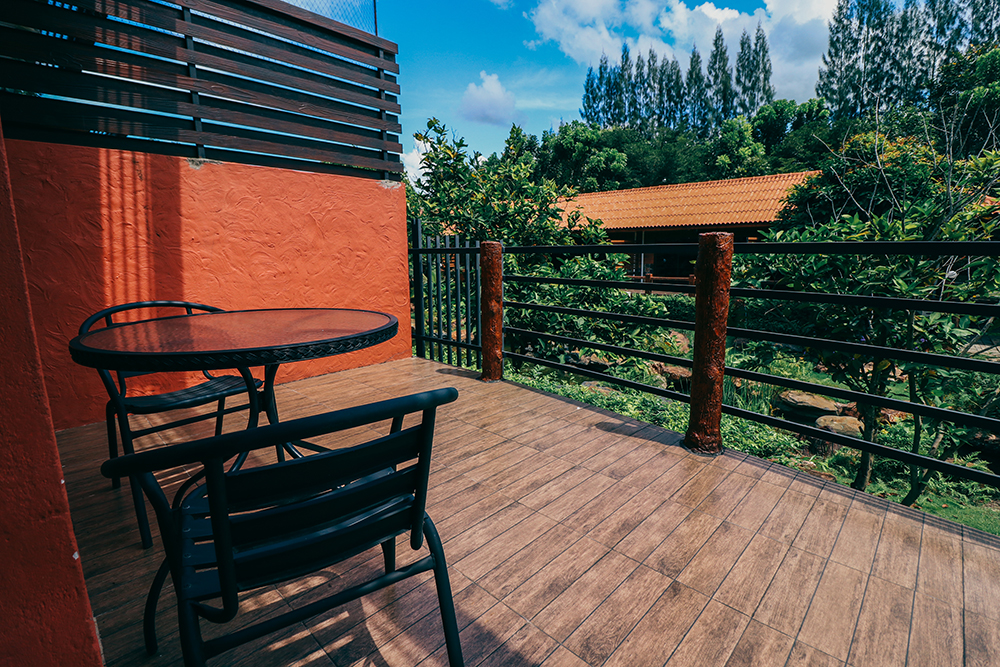 ที่นั่งริมระเบียงสัมผัสวิวแบบเต็มๆ ได้ฟิลเจแปนนิสสไตล์