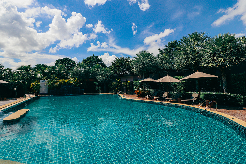 สำหรับสระว่ายน้ำของรีสอร์ท จะเป็นสระน้ำเกลือนะฮะ ดูแลกันอย่างพิถีพิถันมาก