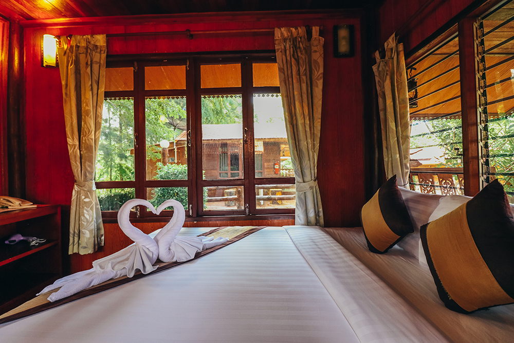 สำหรับห้องพักมีให้เลือกหลายแบบเลยล่ะฮะตั้งแต่บ้านไม้สไตล์วินเทจ สไตล์โมเดิร์น